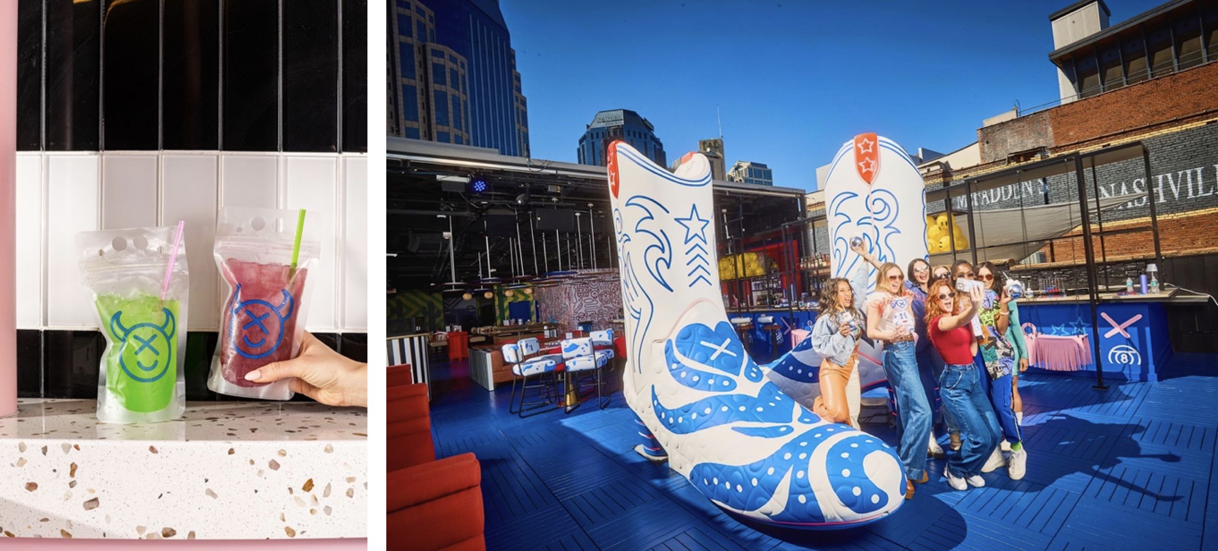 L to R: Play Playground Party Pouches; Nashville Rooftop.
